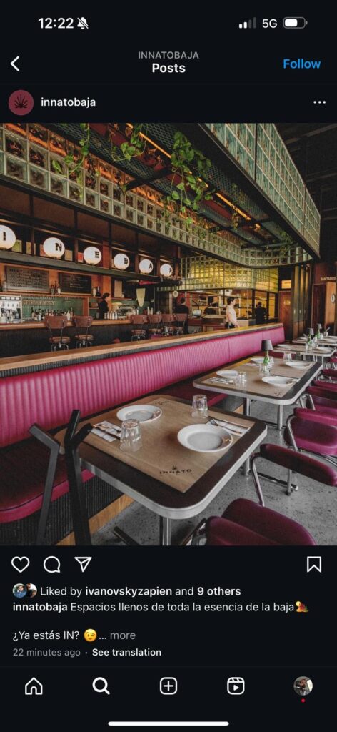 – *Unique Ambiance*: Innato’s atmosphere is a perfect blend of modern and traditional elements, with a cozy and trendy vibe that’s ideal for group gatherings or solo diners. The decor and music transport you to the Baja California region, creating a unique experience.