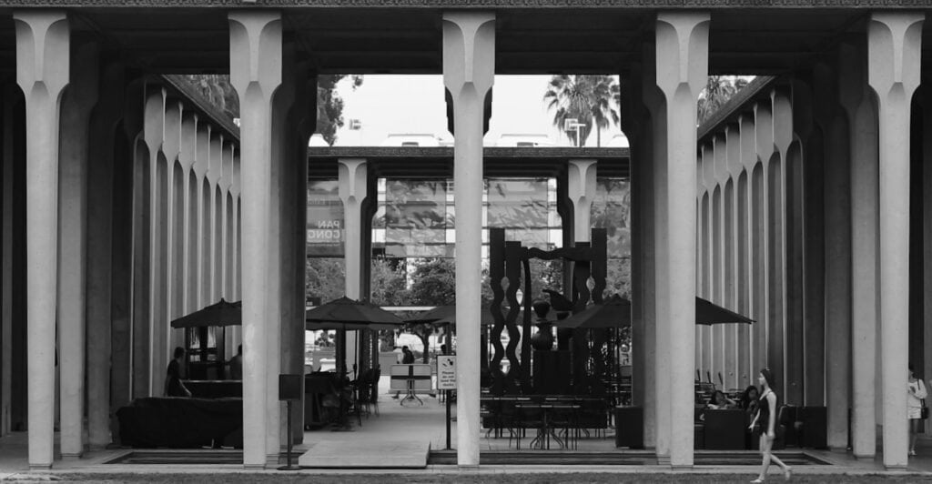 One of San Diego’s most iconic, elegant and successful mid-century modern buildings is the SDMA West Wing addition designed by Robert Mosher in the 1960’s. The open-air sculpture court, which houses Panama 66 within a beautiful array of columns, is dear to the community. It is now being threatened by a new SDMA expansion proposal that will demolish and replace it with an even more modern building designed by the internationally recognized, Lord Norman Foster.
