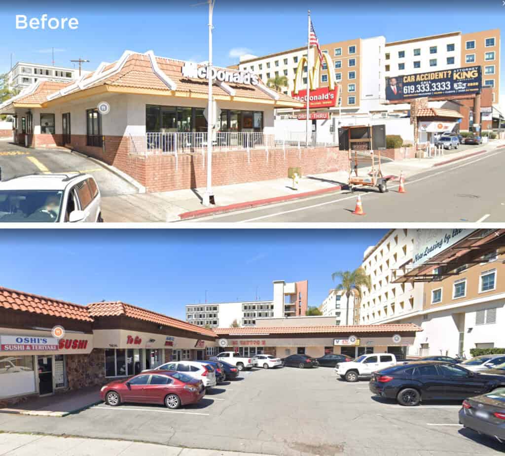 Interesting before and afters. It’s nice that they were able to squeeze in more landscaping than there was before.