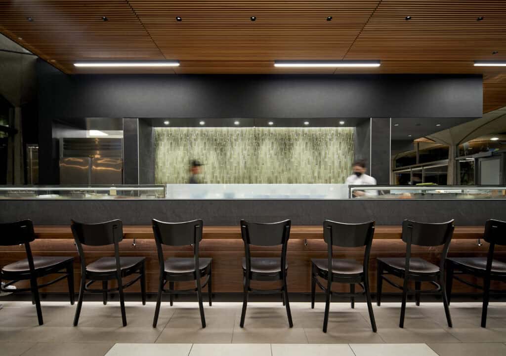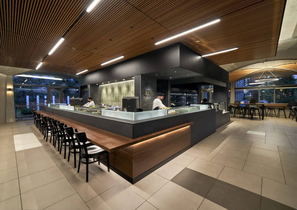 This project encompassed a renovation and upgrade of the 64 Degrees restaurant at UC San Diego, transforming it into Umi, a new Sushi Bar and dining space. Umi blends design and architecture to offer a relaxed yet sophisticated sushi dining experience for students and faculty. The design emphasizes the art of sushi making, showcasing fresh ingredients and sushi stations. Umi features sleek, modern design elements, creating an inviting atmosphere ideal for a quick bite between classes or a leisurely meal with colleagues. Whether for a casual meal or a more immersive dining experience, Umi provides a captivating setting for every occasion.